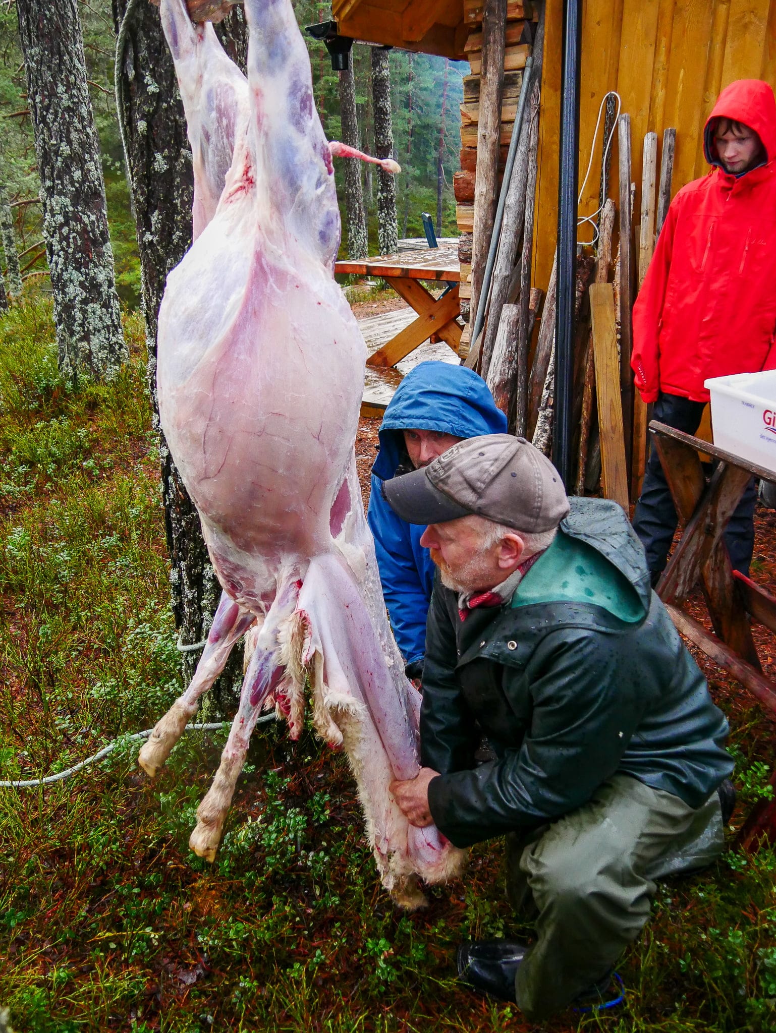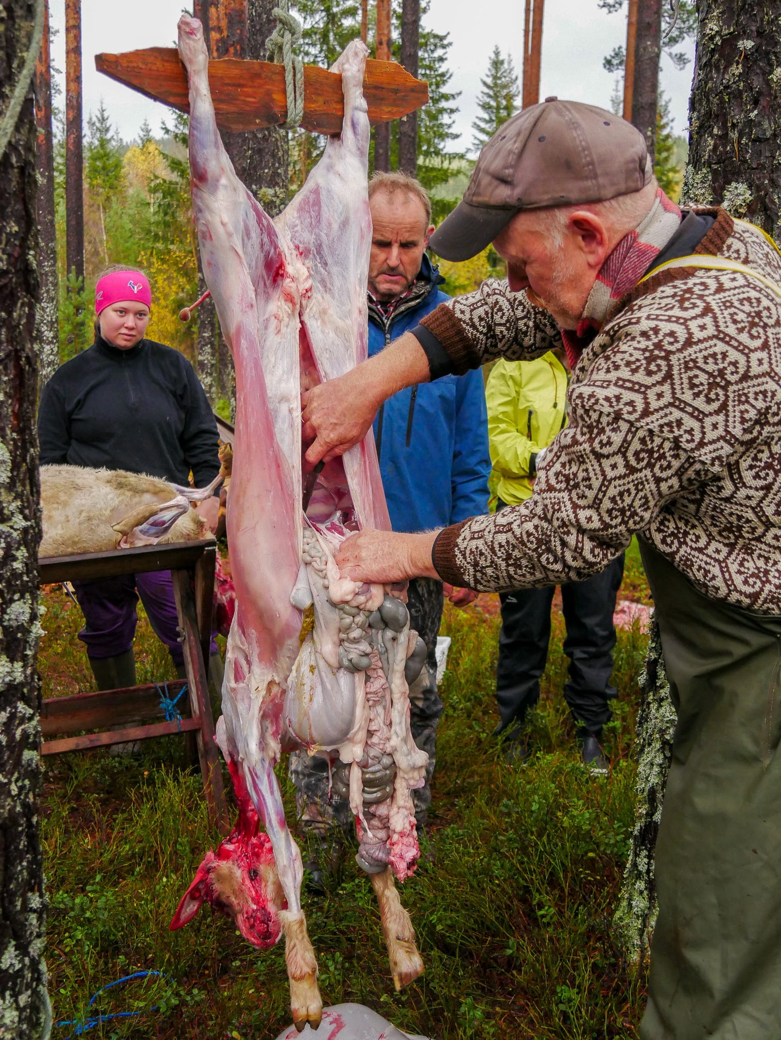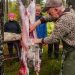 Første dagen deltok om lag 30 elevar. Nokon kom med kano og andre med med buss. Den vidkjende sauebonden og saueklypparen Sven Reiersen kom med lam. Desse blei avliva på profesjonelt vis, i påsyn av alle elevane. Etterpå var det slakting og partering. Lunsjen var steikt lammehjarte og blodpannekake.
