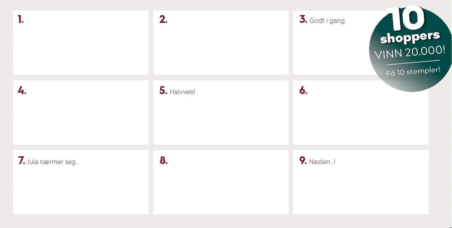 10-shoppers gjelder fra fredag 12. november, og innleveringsfristen er julaften 24. desember kl. 11.00. Heftet med 10-shoppers inneholder alt du trenger vite av informasjon, og kan fås hos medlemsbedriftene. Det er mulig å levere så mange du vil, bare kriteriene er oppfylt på hver enkelt.