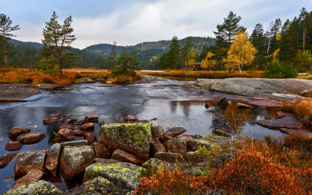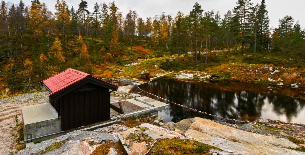 Nedanfor kraftverksbygningen, ved Vreistemyr, er det eit veldig triveleg, eldre hyttefelt.