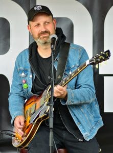 Kveldens musikere var stjerneparet Stein Roger Sordal (bildet øverst) og Michael Aadal. Litt før klokka 19 satte de i gang fra scenen med sin første ordinære sang. Det var intet mindre enn Bruce Springsteen sitt mesterverk «The Goast of Tom Joad». Kvaliteten på både sang og gitarspill var skyhøy, og tonen var satt for en strålende kveld. Men alt før dette hadde de og gjestene stemt i med «Happy Birthday» til en meget fornøyd dame som feiret 50-årsdagen sin i Evje-kvelden. Fra JetBurger sitt vesle mobile gatekjøkken, suverent traktert av Truls Evje, duftet det deilig av stekte hamburgere.