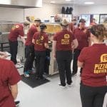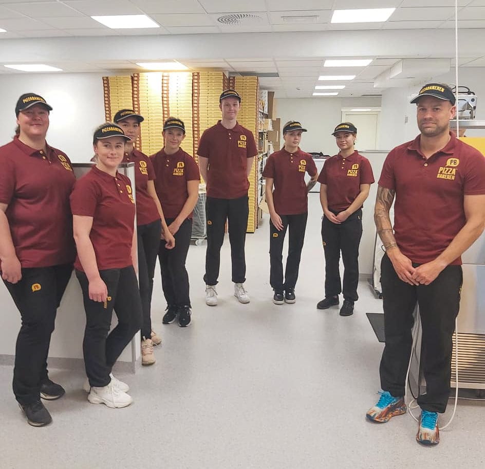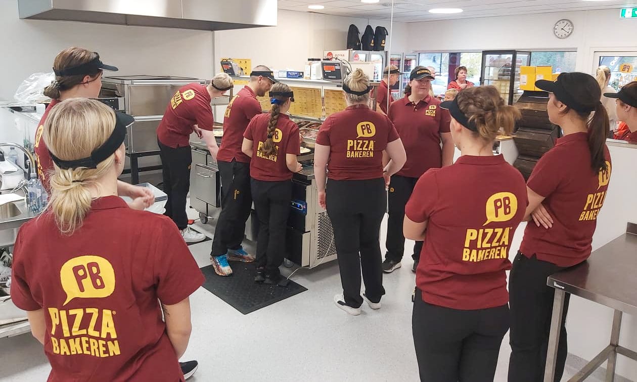 Det er enormt med unge lokale arbeidere som har fått jobb i den splitter nye Pizzabakeren. Det er siste opplæringsdag, og vi ser de fokuserte ungdommene følge godt med når det forklares om steikegrader, rutiner og ikke minst hva som må til for å lage en skikkelig god pizza.