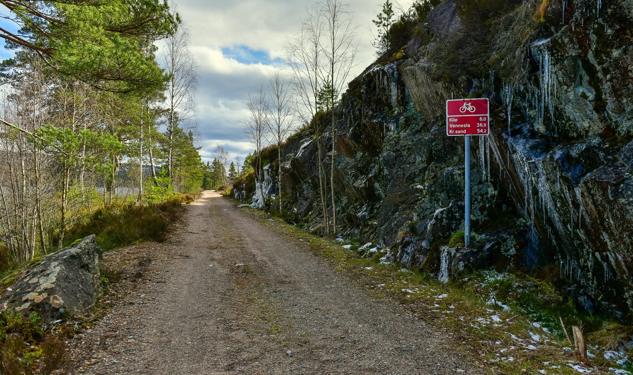 Nasjonal sykkelrute nr. 3 går langs den gamle jernbanelinja på dette strekket. Det er fortsatt litt snø igjen her og der, slik at en sykkeltur langs hele den ruta nok ikke er så enkel akkurat nå. Men om veldig kort tid er våren og den ekte varmen her. Da er en sykkeltur på den fine grusvegen, og videre nedover forbi Kile til Gåseflå, en bortimot magisk opplevelse.