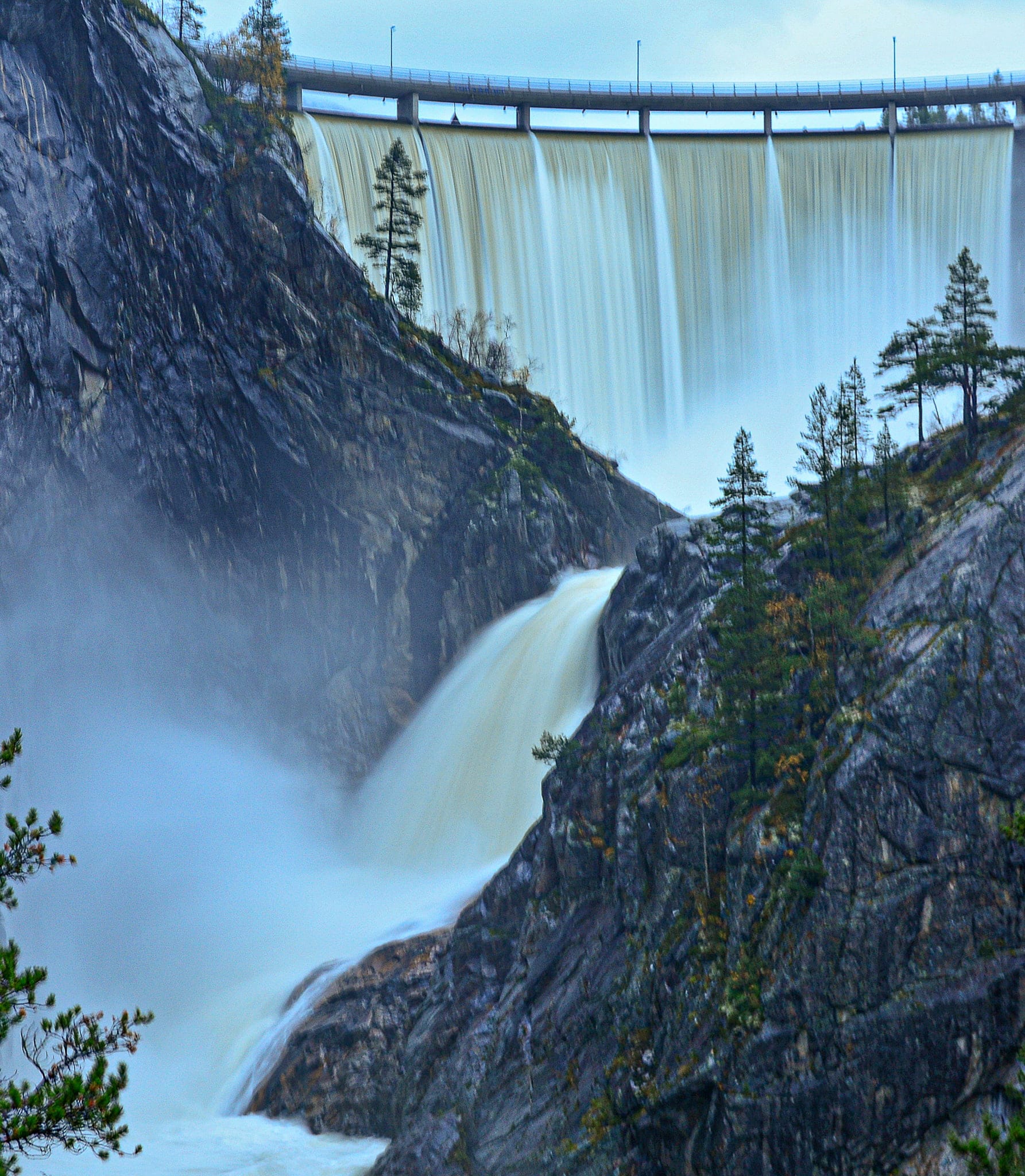 Dammen er 142 meter brei og hevar vasstanden i elva med 40 meter. På toppen av dammen er det bru med bilveg til Stavenes.