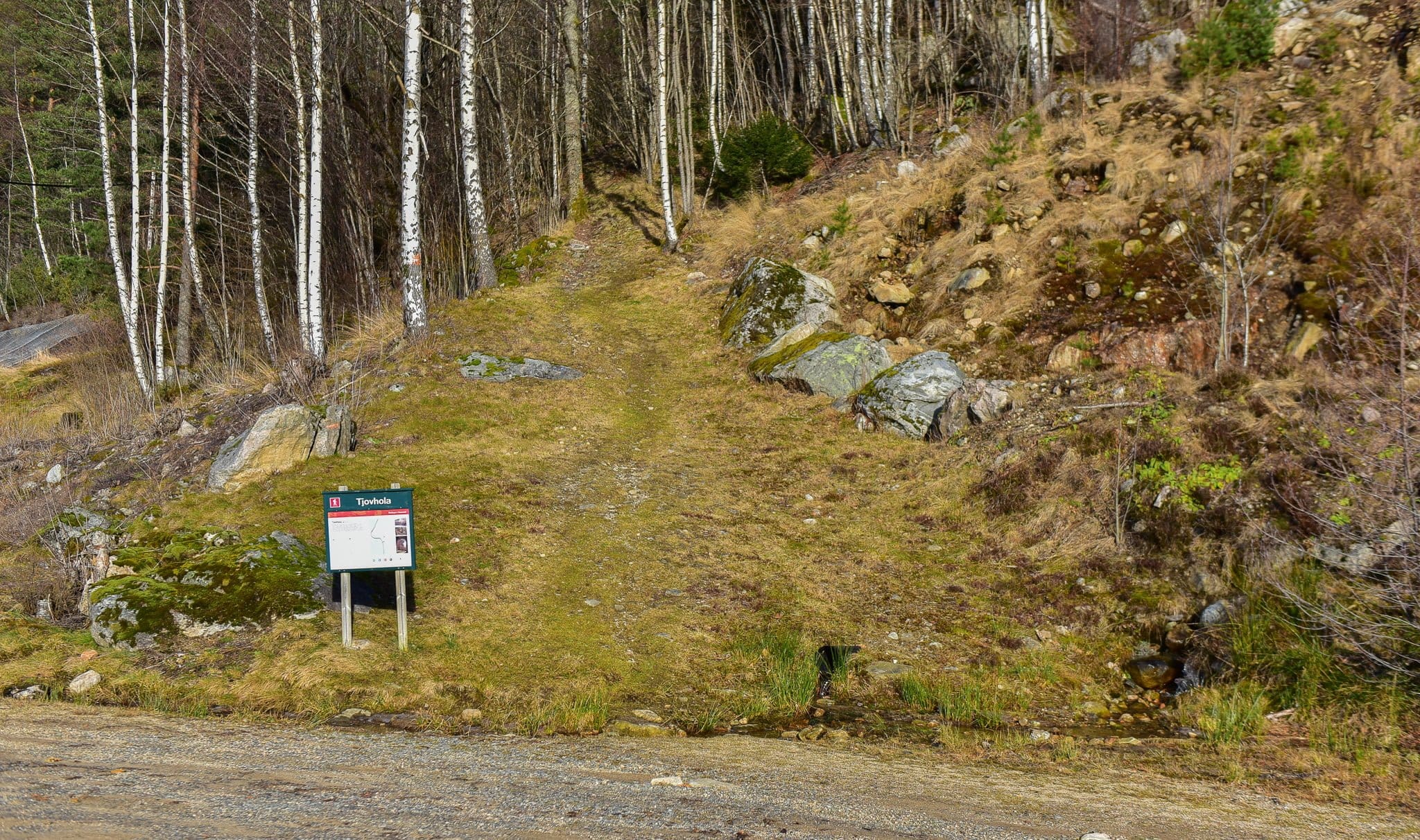 Tjovhola er ei svær, naturleg hole høgt oppe i fjellsida mellom Byglandsfjord og Neset Camping. Det er bratt opp, og tungt å gå, men ein kort og spennande tur!